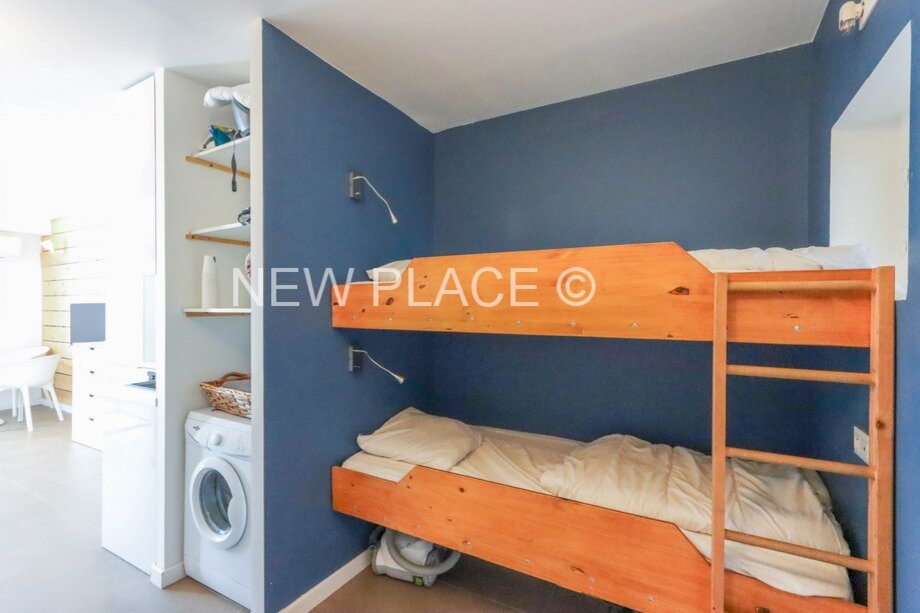 This apartment consists of: an entry, a living room opening onto terrace of 15sqm, open kitchen, a bedroom, an alcove with bund beds and a shower-room with toilets.
