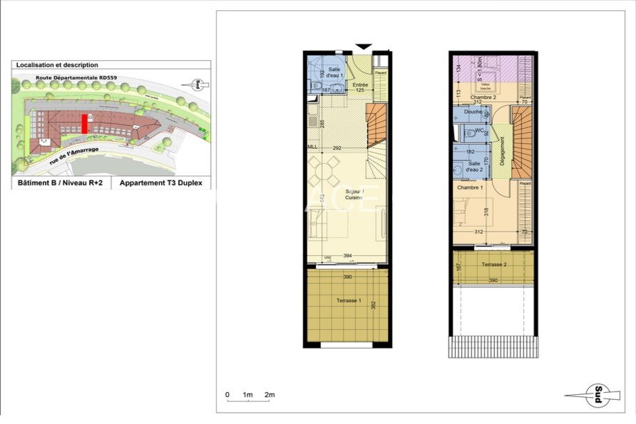 At the 2nd level : Bedroom 1 opening onto a terrace of 6,50sqm and own shower room – Bedroom 2 with own shower room – Independent toilet.