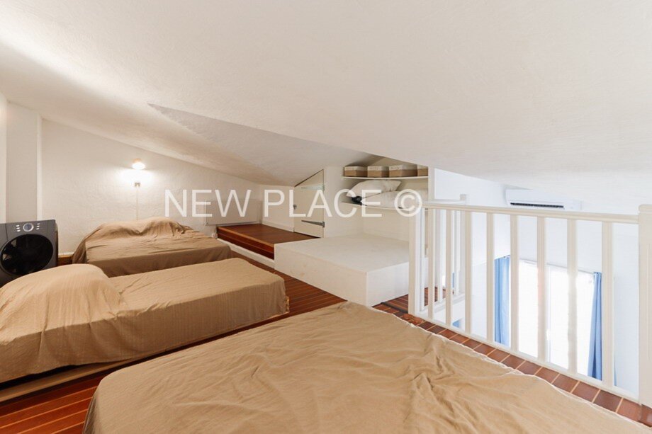 Mezzanine studio apartment located on the 2nd and top floor of a building with lift in the heart of the village.