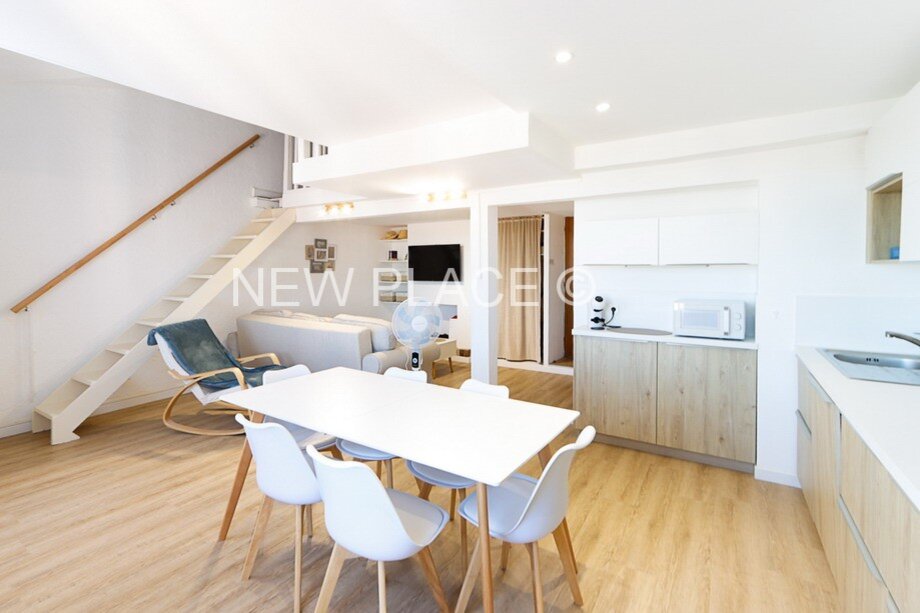 It comprises: an entrance, a spacious living room with an open kitchen, a shower room with toilet, and a sleeping area on the mezzanine.